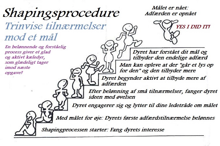 Shaping er formning af adfærd via trinvise tilnærmelser til denne adfærd. Man kan betragte det lidt som at gå op ad en trappe: For enden af trappen er dit mål og for hvert skridt op ad trappen nærmer du dig dit mål. Disse skridt, eller trin op ad trappen, betragtes som fremskridt når du er igang med at lære ny adfærd.